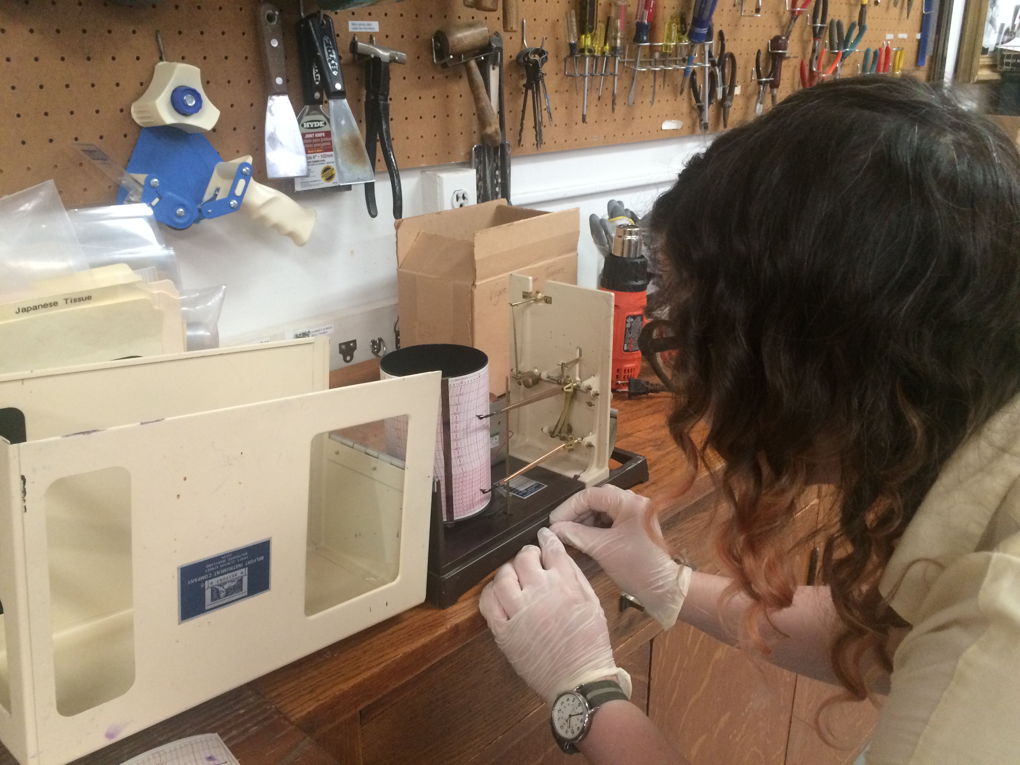 Changing hygrothermographs and monitoring RH, temperature, and dewpoint from data loggers throughout the museum