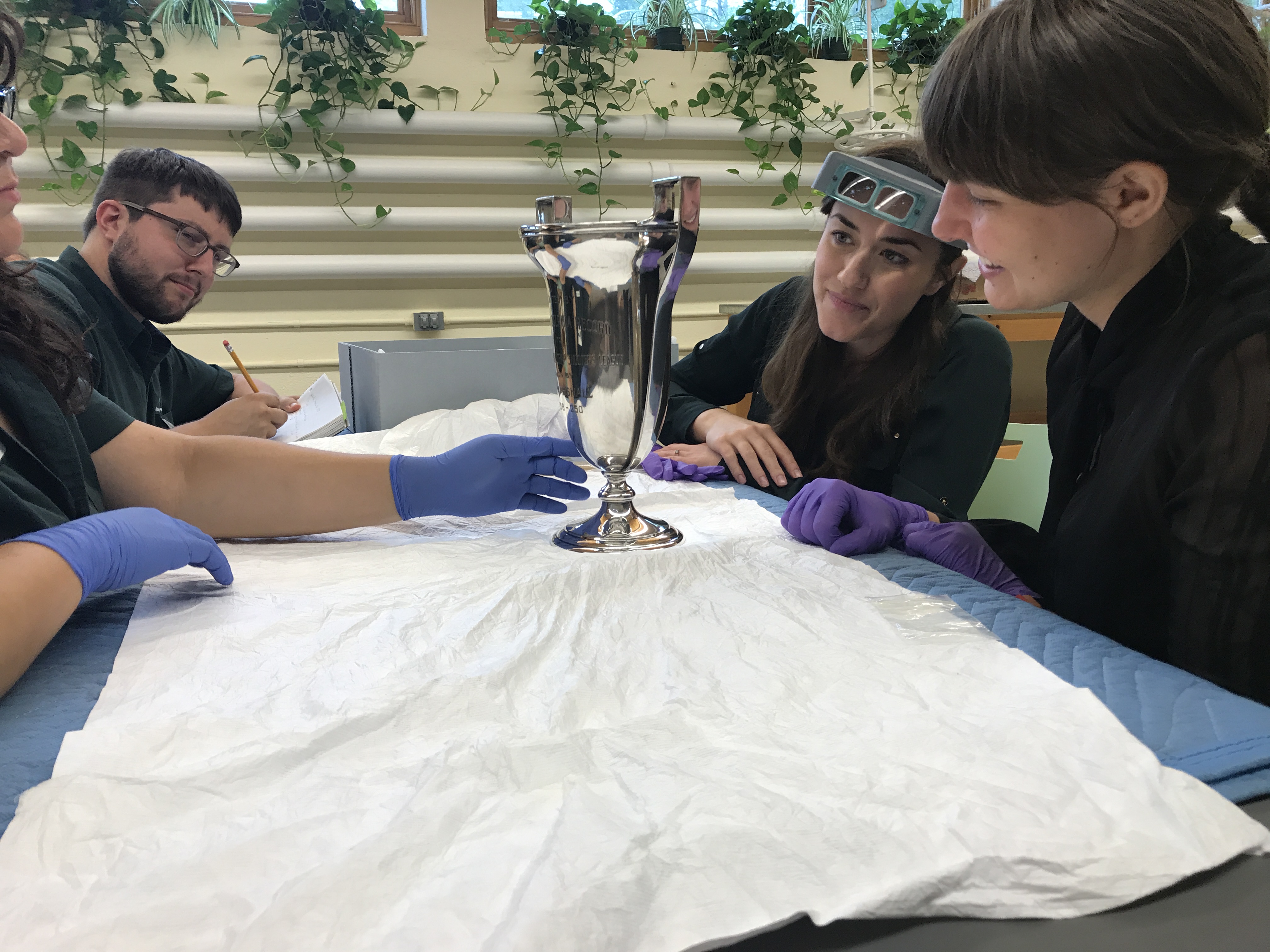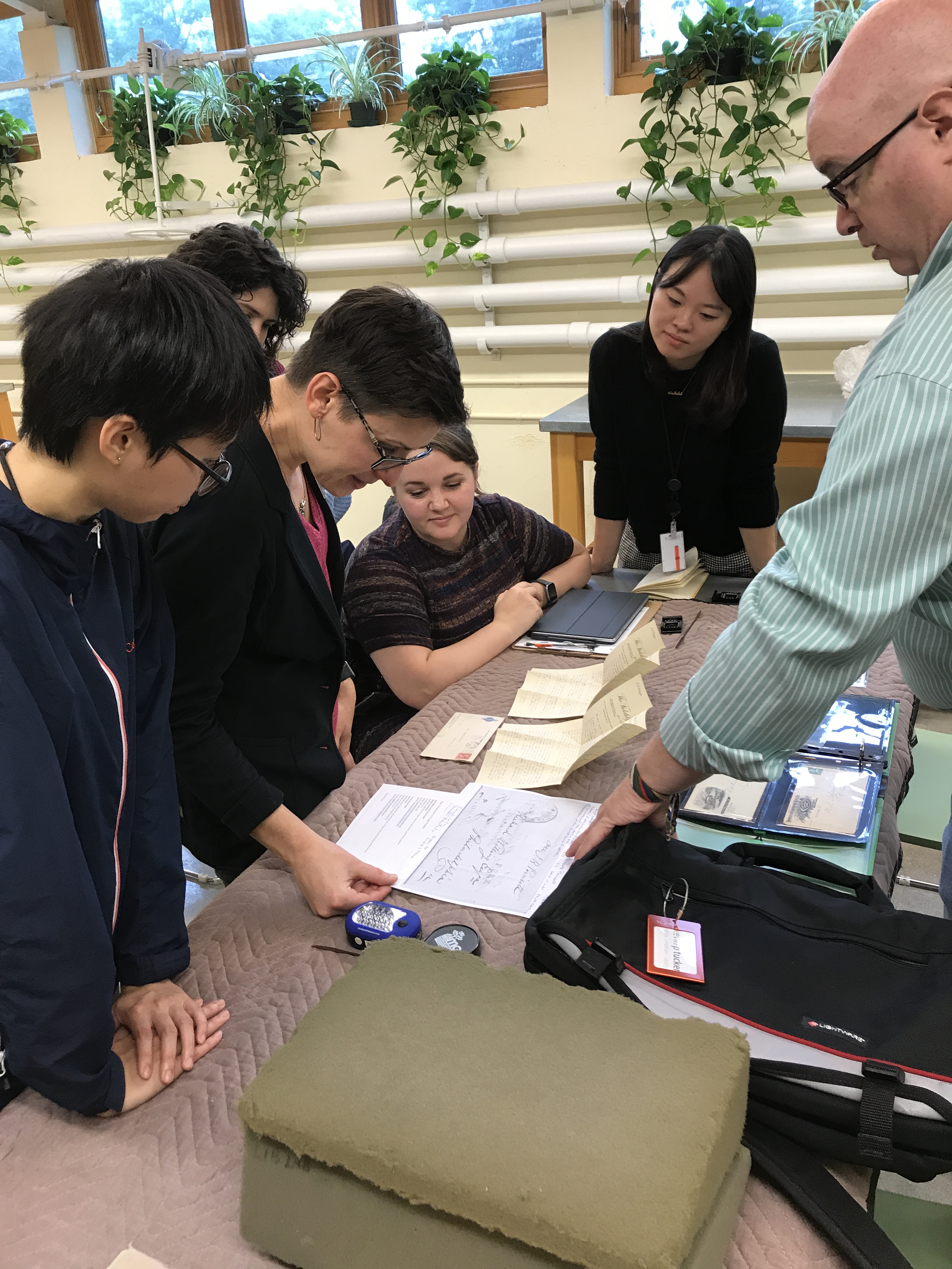 Every month the Winterthur Museum Garden & Library hosts a free conservation clinic for the public. Visitors to the clinic bring in cherished collection items to be examined by Melissa and her classmates to discuss condition and preventive care. For each clinic, Melissa sets up a collections care table with storage examples, didactics, product samples, and resource sheets to hand out.