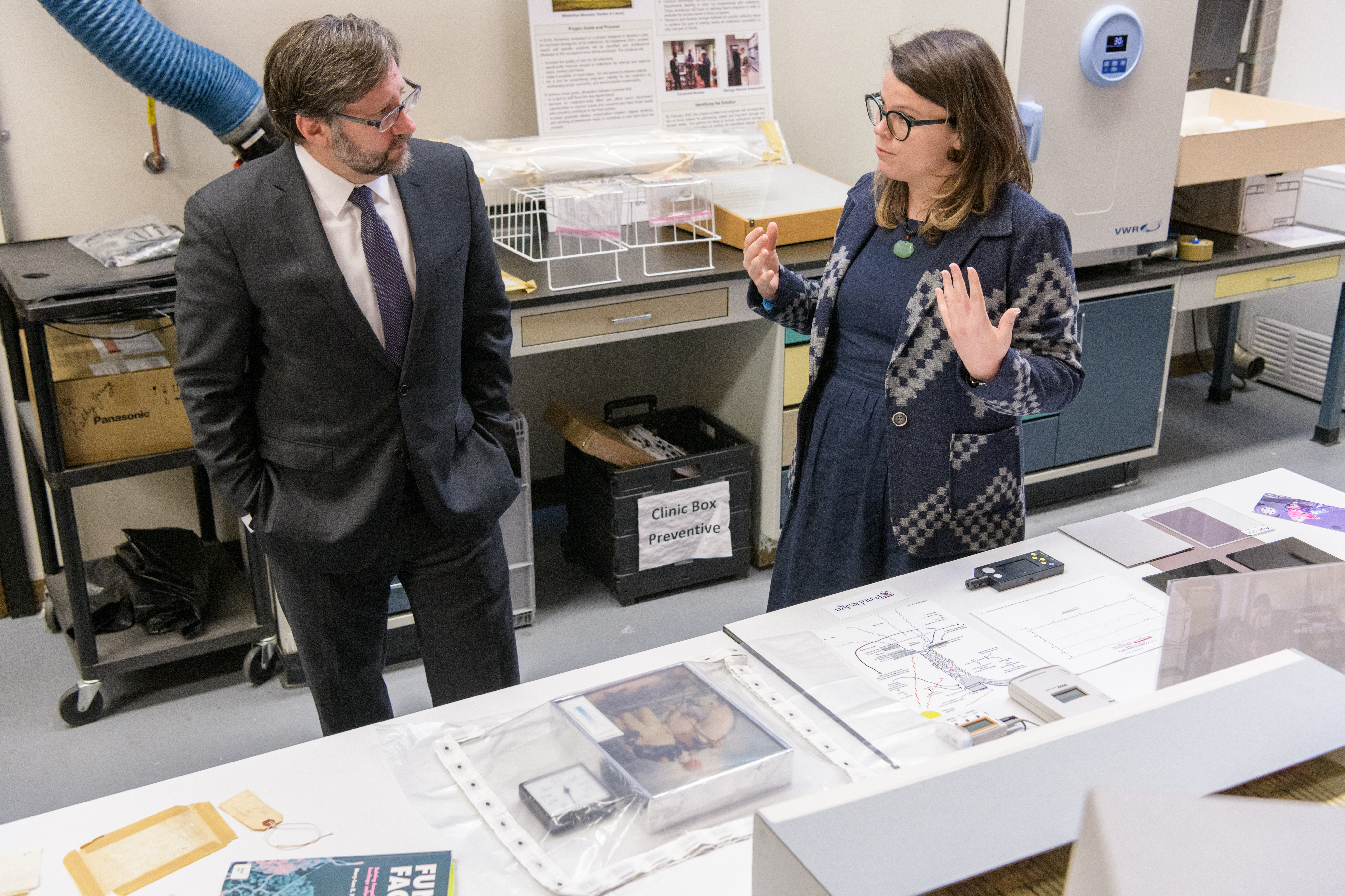 There are regular tours of the conservation laboratories at Winterthur. Melissa uses these visits as an opportunity to describe preventive conservation to the public and make people aware of the research and its applications.
