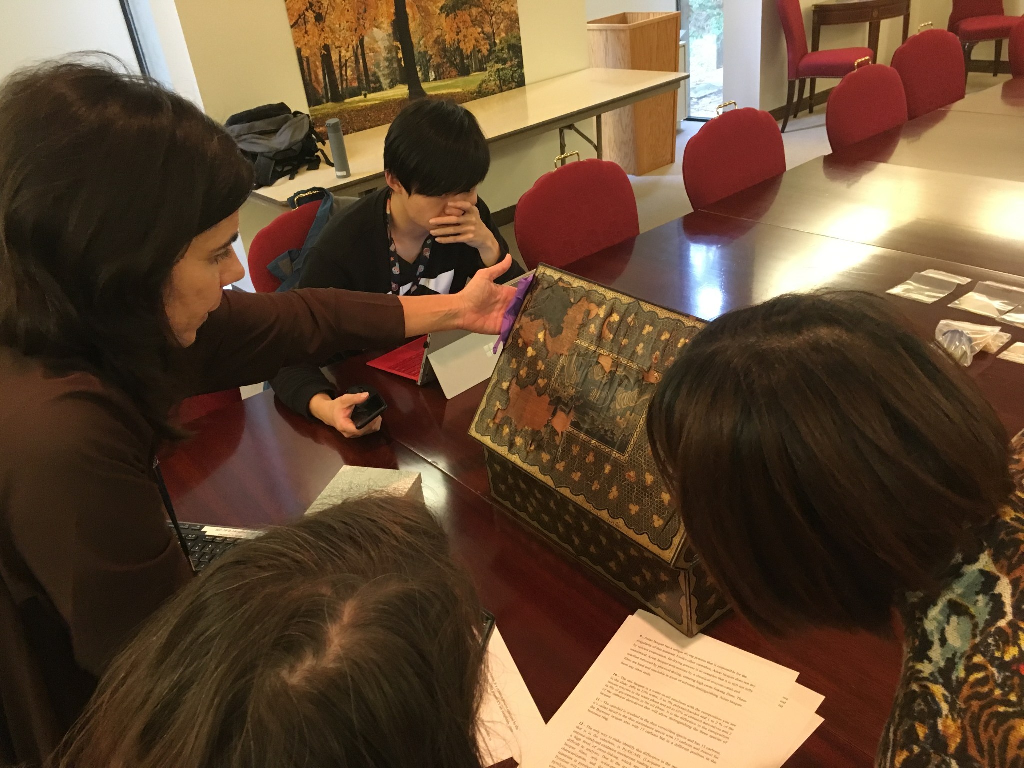 A lecture discussing the history, manufacturing techniques, polymerization mechanisms, treatment, and preventive considerations for Asian lacquer objects