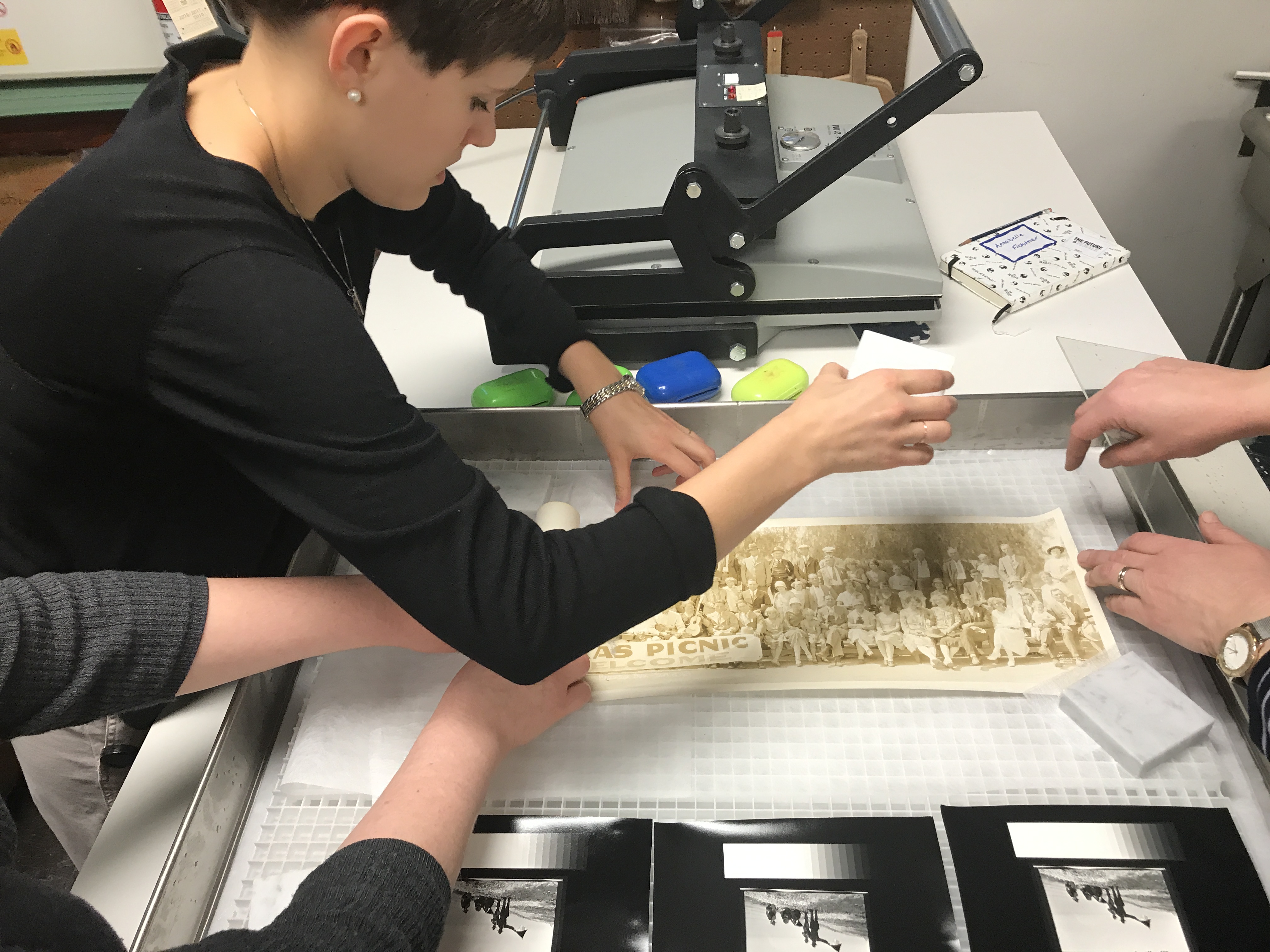 Hands-on workshop to experiment with various humidification, unrolling, and flattening/drying techniques for silver gelatin, albumen, and collodion photographs.