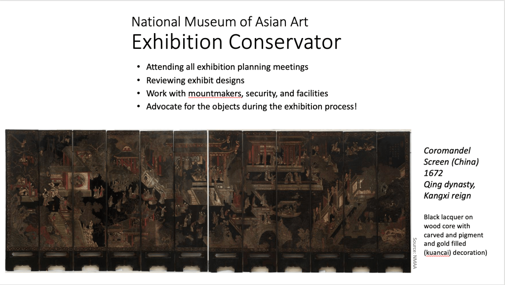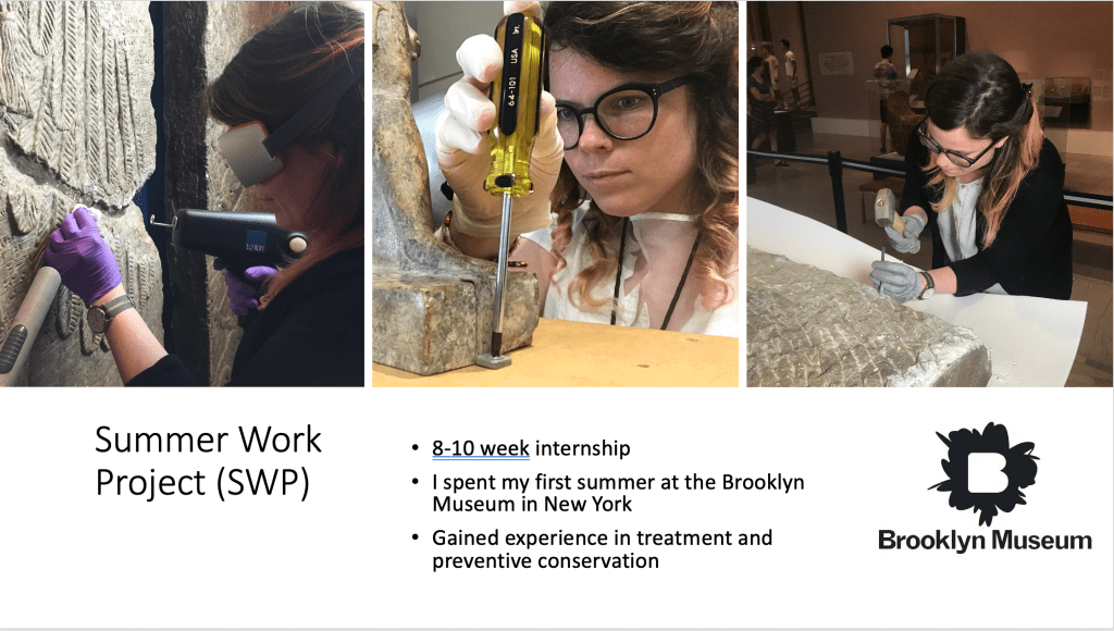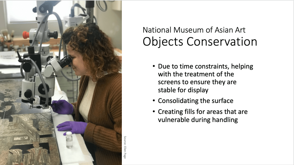 - Giving a presentation on graduate training and the preventive conservation major in the USA (see above slideshow)