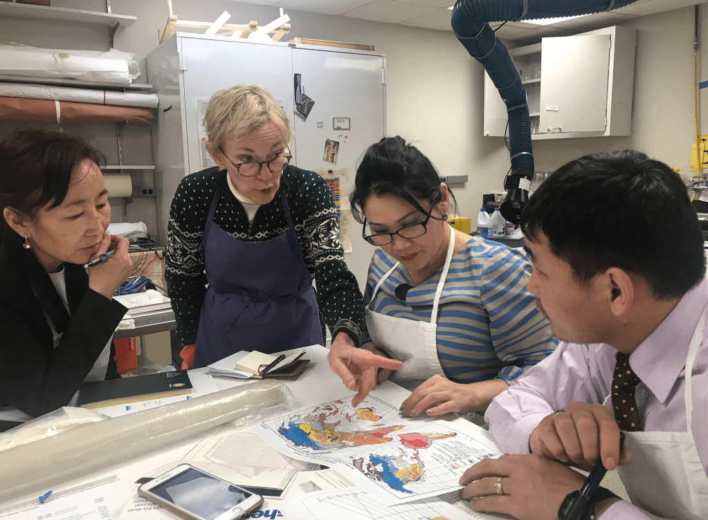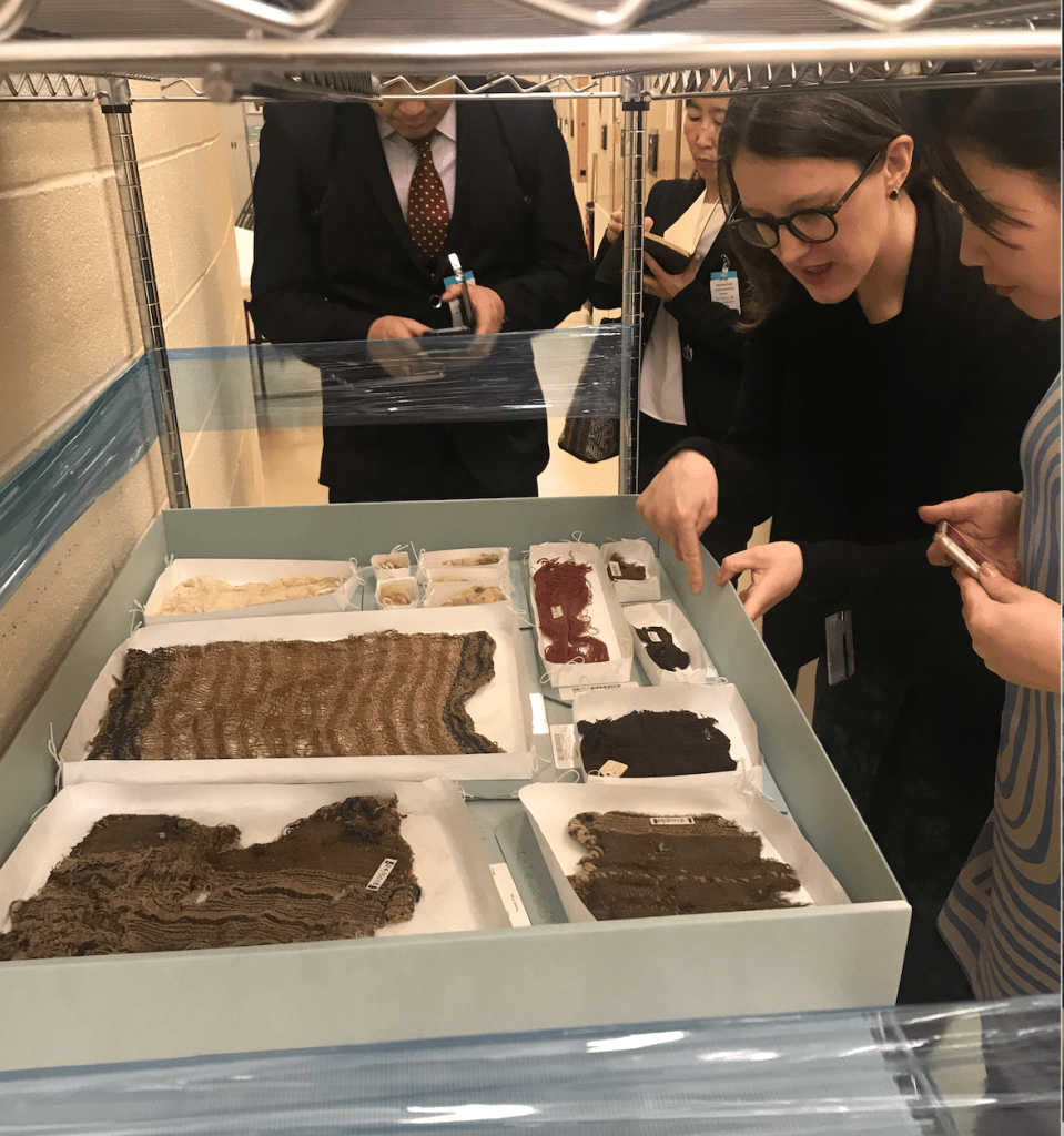 From February 10th through February 14th 2020, three conservators from Mongolia visited MCI. Their trip was funded through the American Center for Mongolian Studies, and afforded them an opportunity to present their research at a conference in DC followed by textile conservation training organized by both MCI and the Metropolitan Museum of Art. Along with MCI textile conservator, Mary Ballard, Melissa acted as a host and joined the visitors for their activities during the week. The week included some of the following activities: