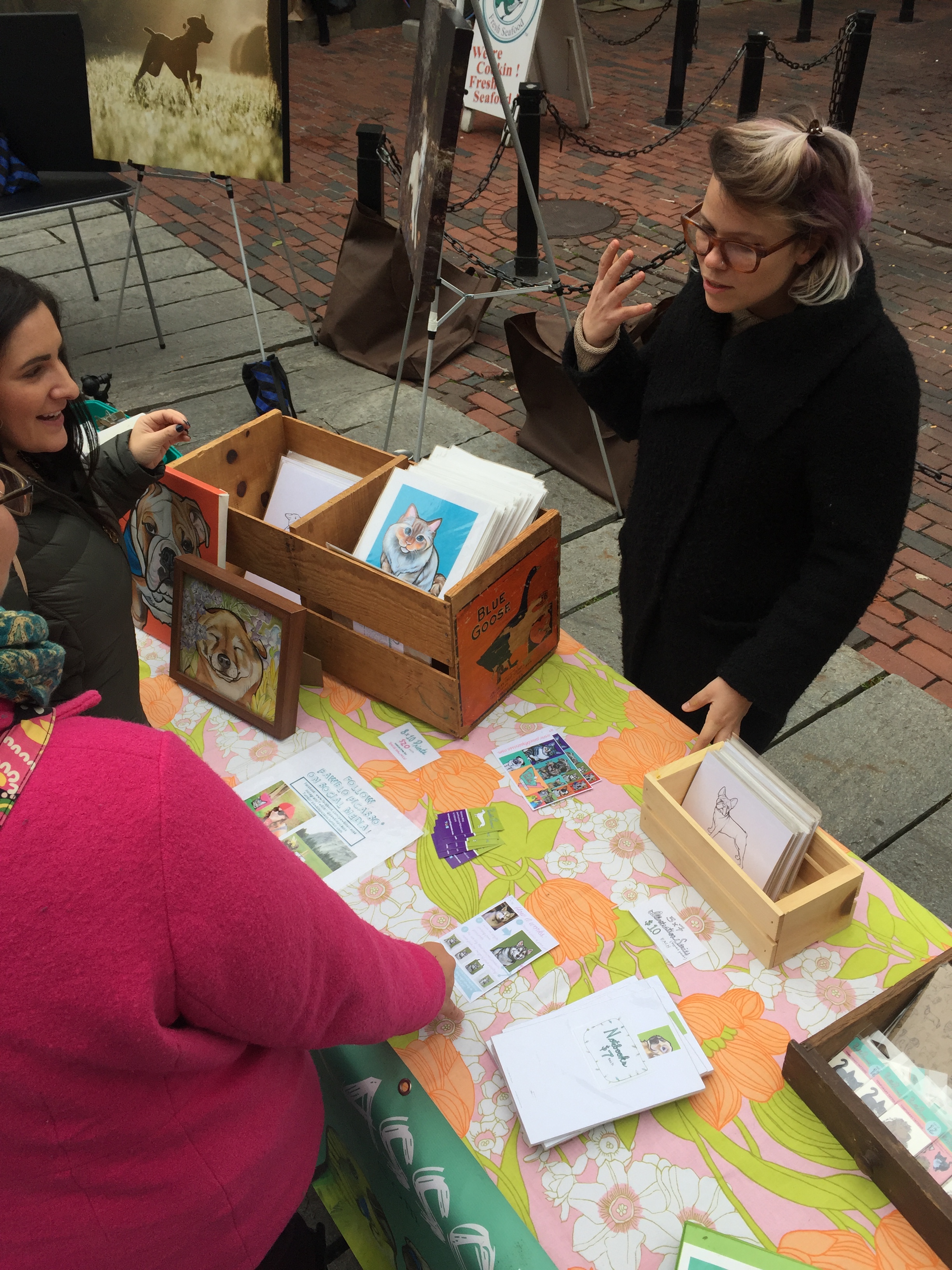 Answering questions for potential customers at Fanuiel Hall Marketplace in Boston (credit: Fred Levy)