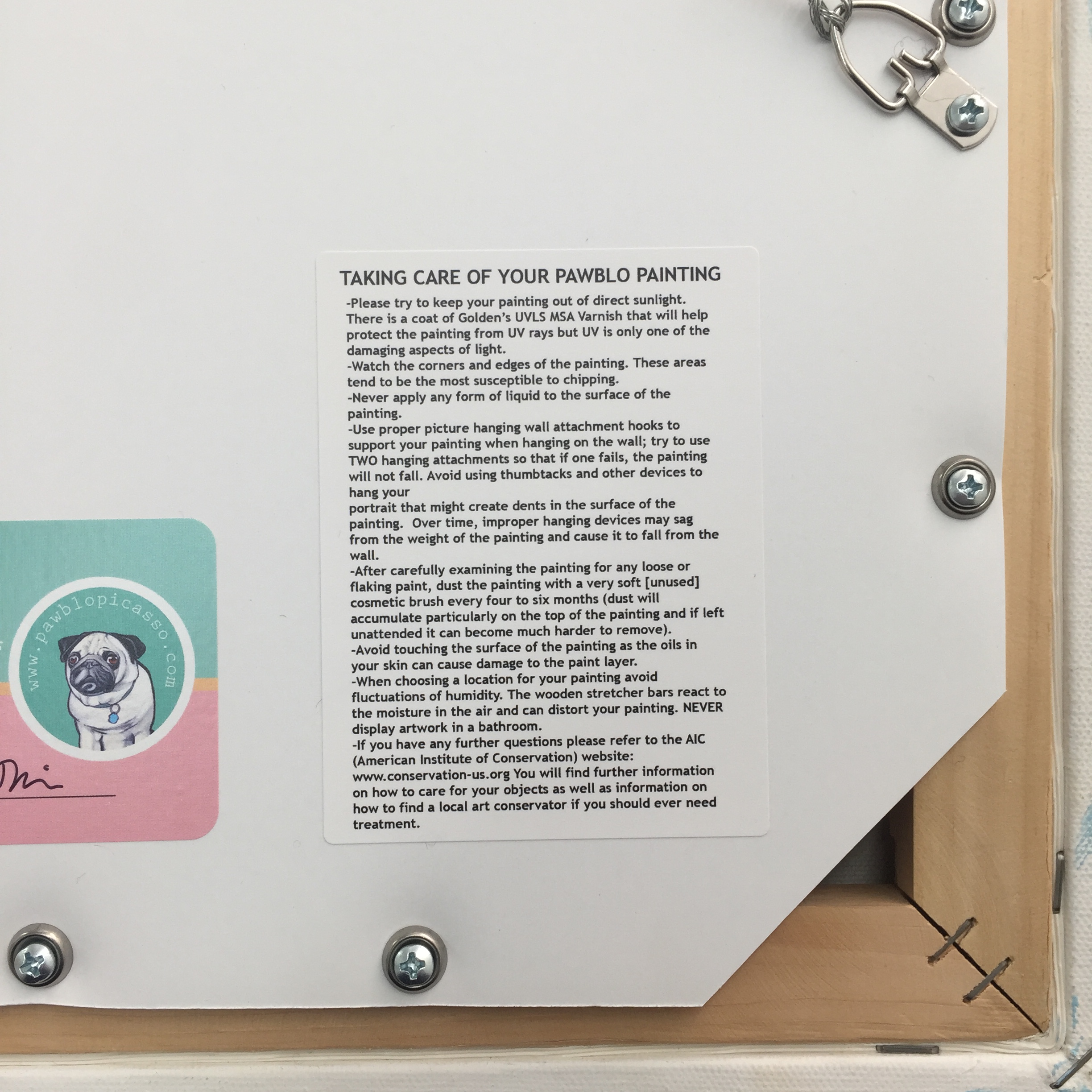 Since Melissa was working concurrently in art conservation, she incorporated a lot of preventive conservation thinking into her work. She did this by constantly reevaluating the way she packed and shipped paintings, and including care instructions and backing boards on all of her paintings. She was motivated to foster the conversation between artists and art conservators with her project, “Creating Art to Last: A Conversation with Art Conservators.”